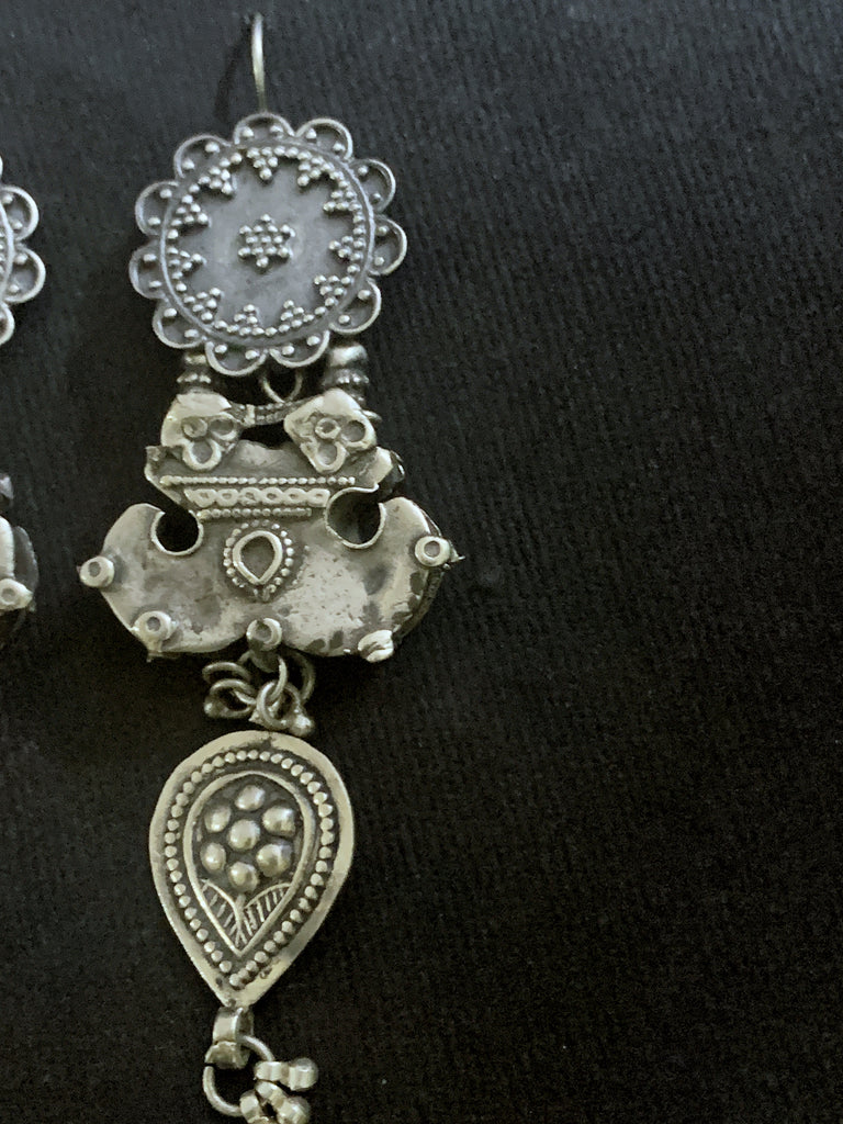 Assembled Silver earrings . Top and the bottom pieces are new pieces. the middle silver piece is vintage