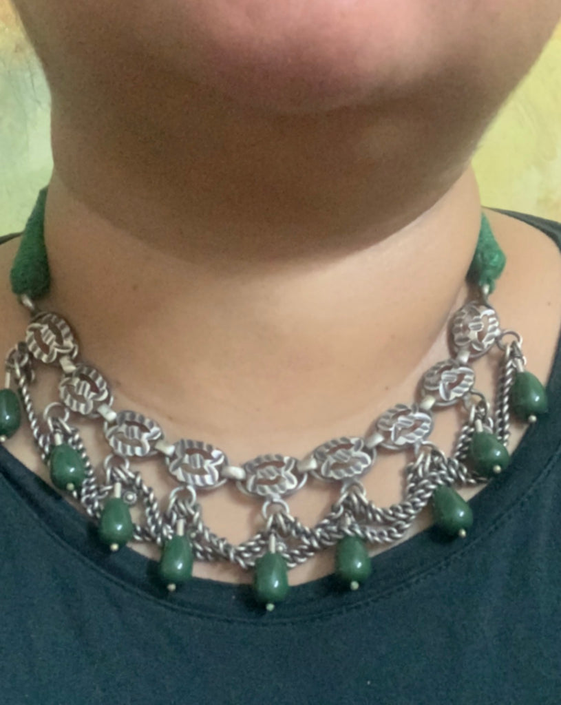 Vintage silver neckpiece with agate beads
