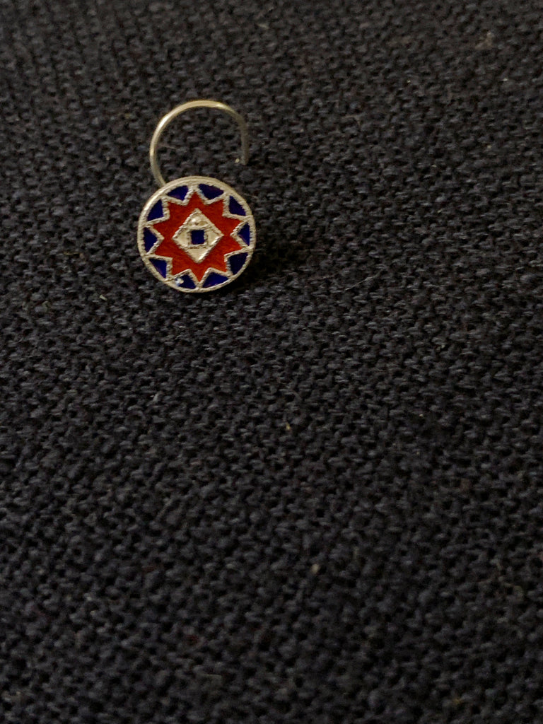 Blue and Maroon enamel nose pin with wire for pierced nose