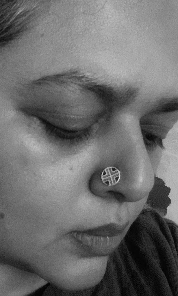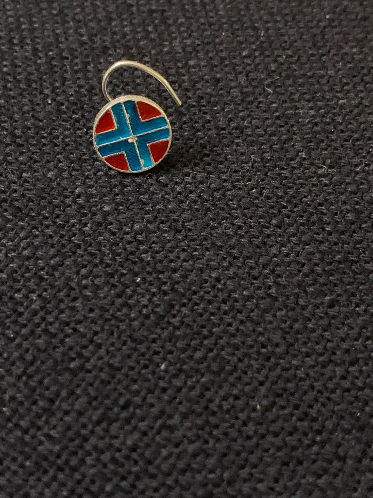 Maroon and Blue enamel nose pin with wire for pierced nose