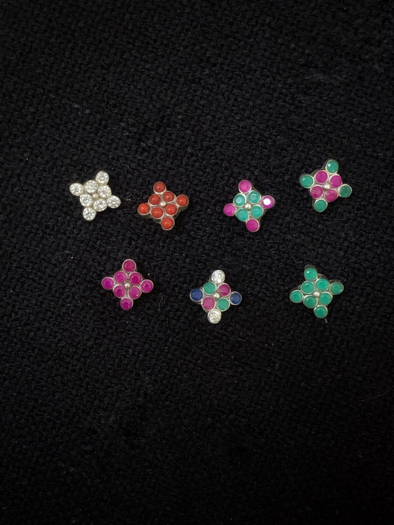 Multi Stone Silver Nosepin