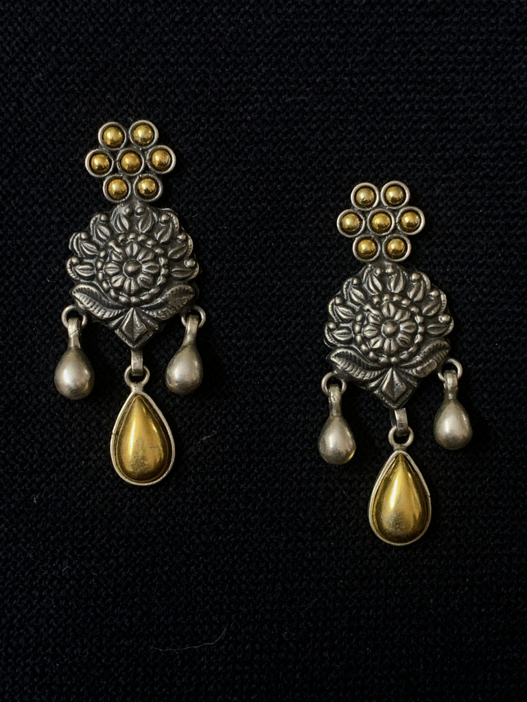 Silver earrings with dual tone