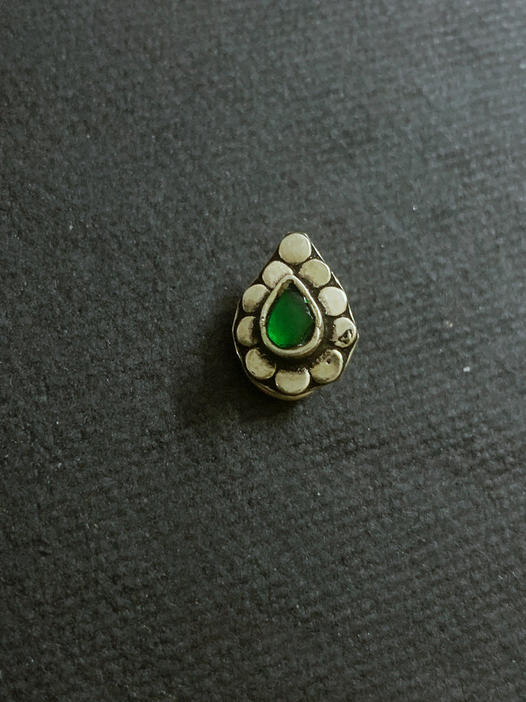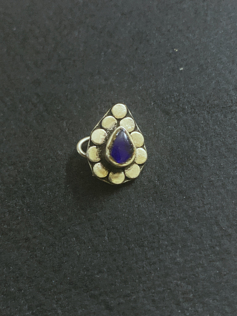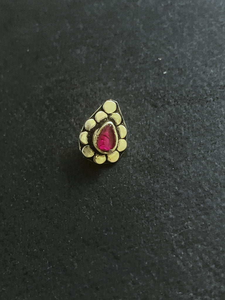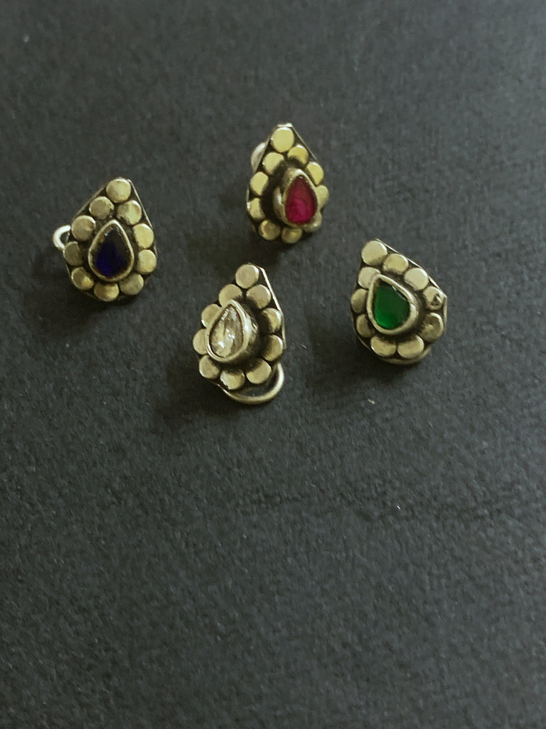 Silver nosepin with tear drop stone for pierced nose