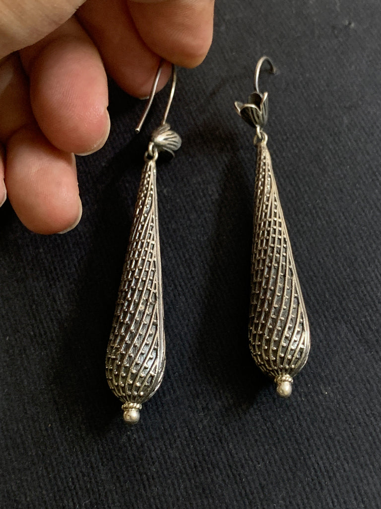 Silver textures long earrings