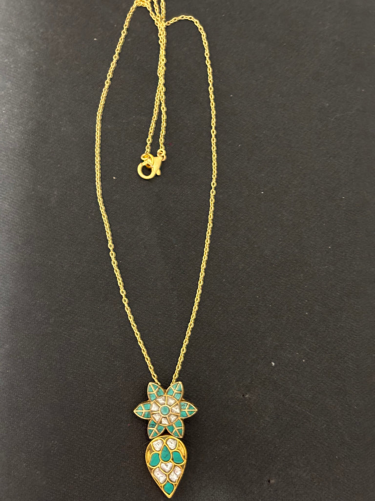 Silver gold plated turquoise and polki jadau work pendant with chain