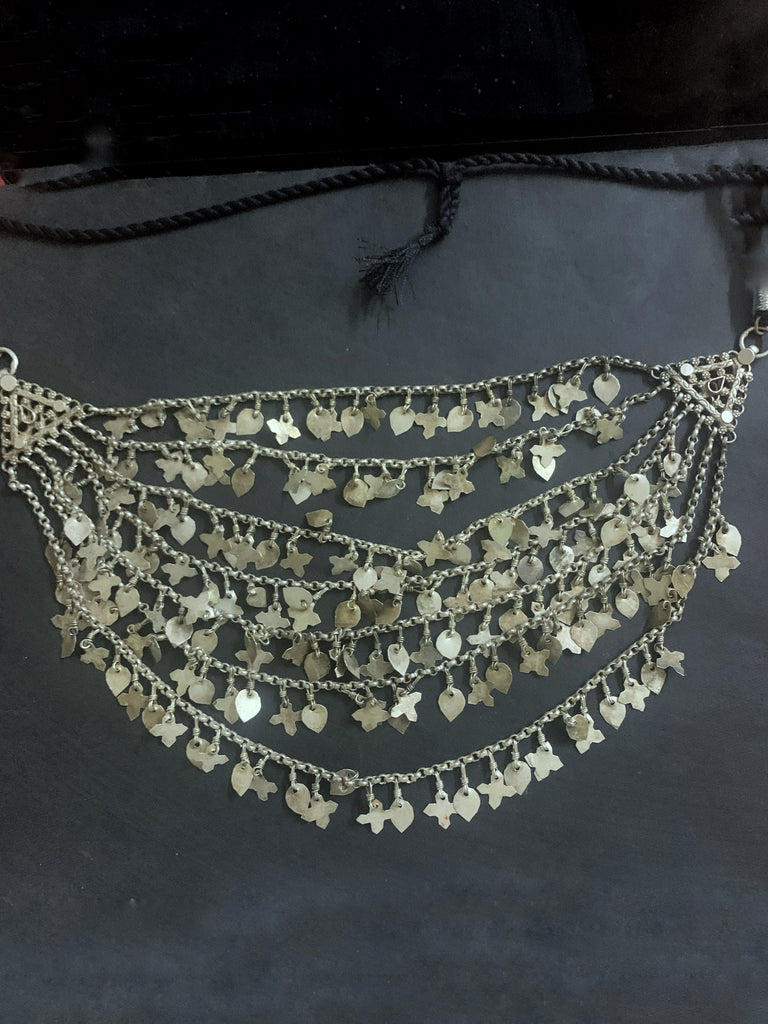 Vintage silver necklace from Himachal Pradesh with hand cut charms